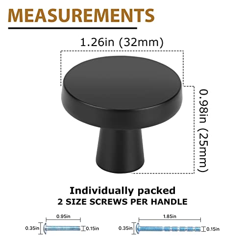 OYX Black Knobs, 6 Pack Black Cabinet Knobs for Round Kitchen Cabinet Hardware Black Dresser Drawer Knobs Matte Black Cabinet Knobs Zinc Alloy Cabinet Door Knobs, Black Hardware for Cabinets